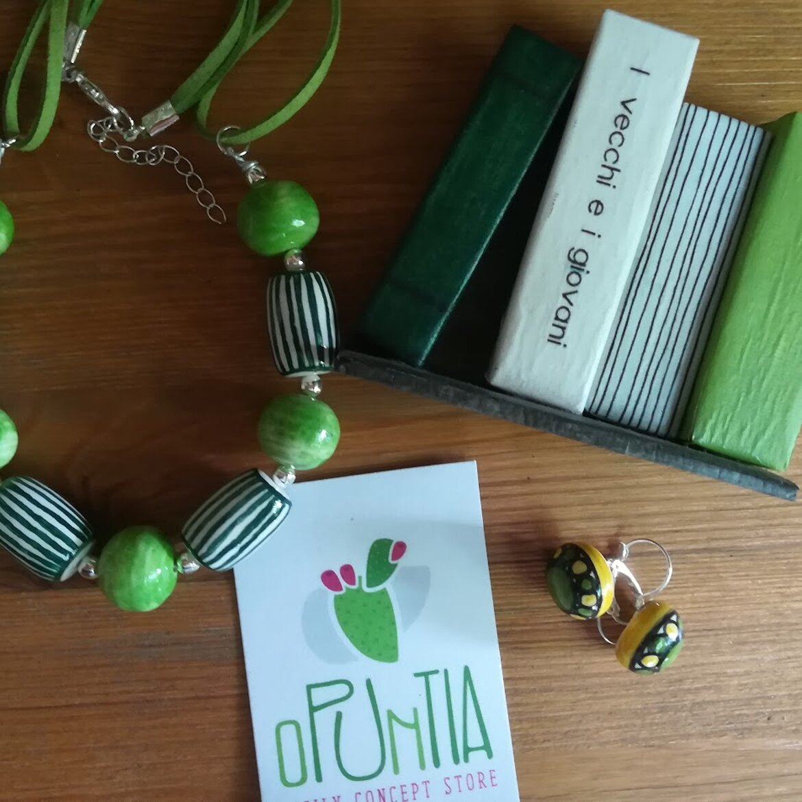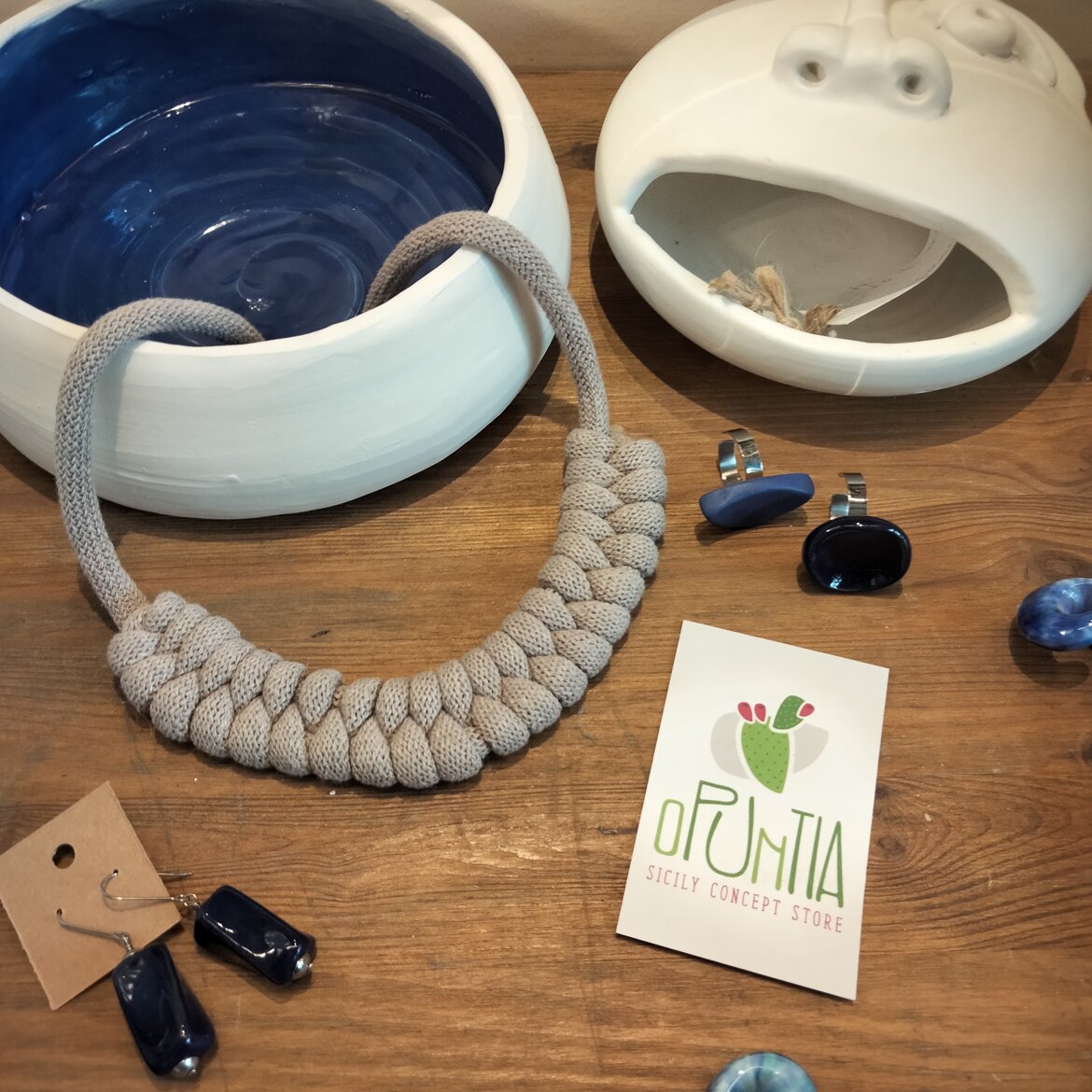 ceramiche di pregio da svariate generazioni, il suo concept store, nell'androne di uno dei palazzi storici di Caltagirone, è un vero e proprio gioiellino. I suoi accessori, collane, ciondoli, bracciali, orecchini, sono rigorosamente realizzati a mano e minuziosamente dipinti con decori geometrici complessi o ispirati alla natura. Noi li adoriamo e ne troverete sempre un buon assortimento in "putia"